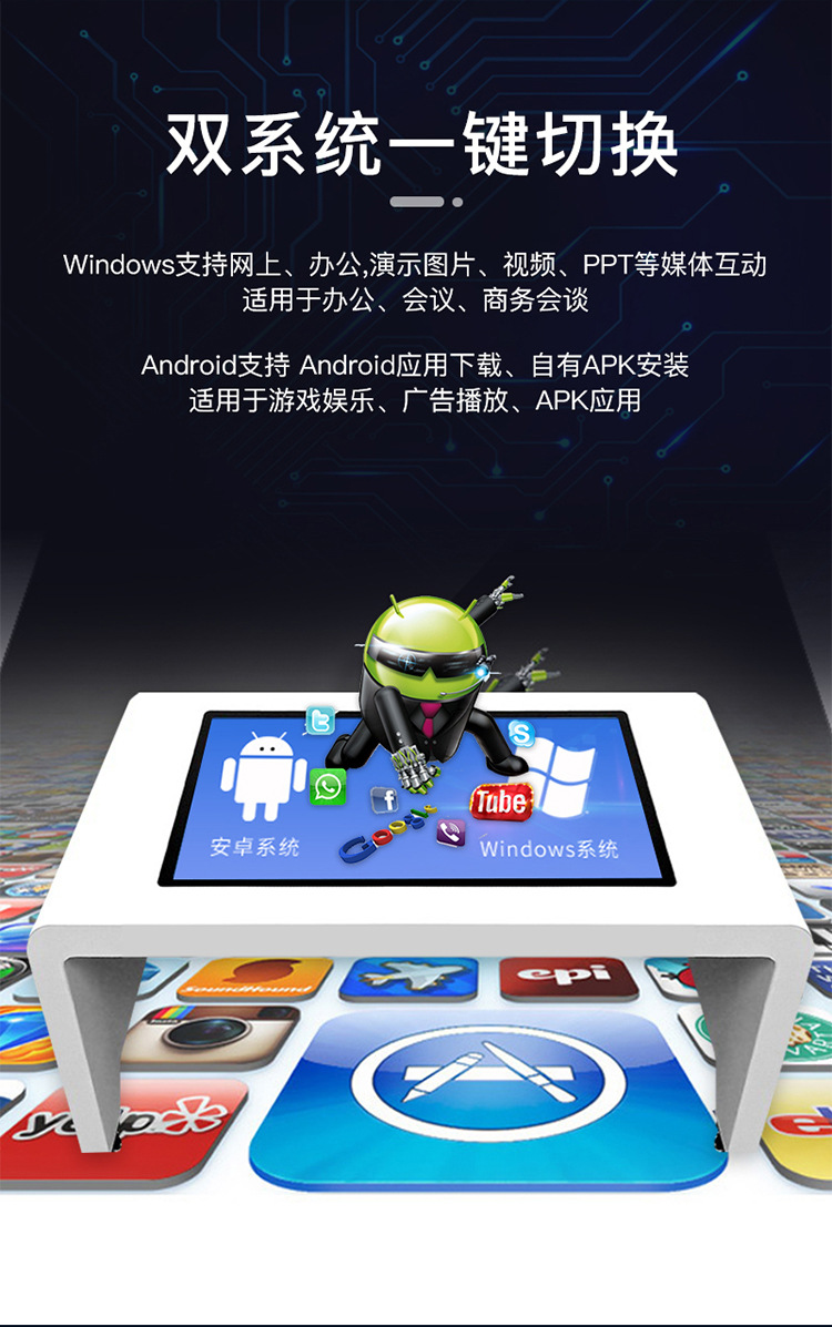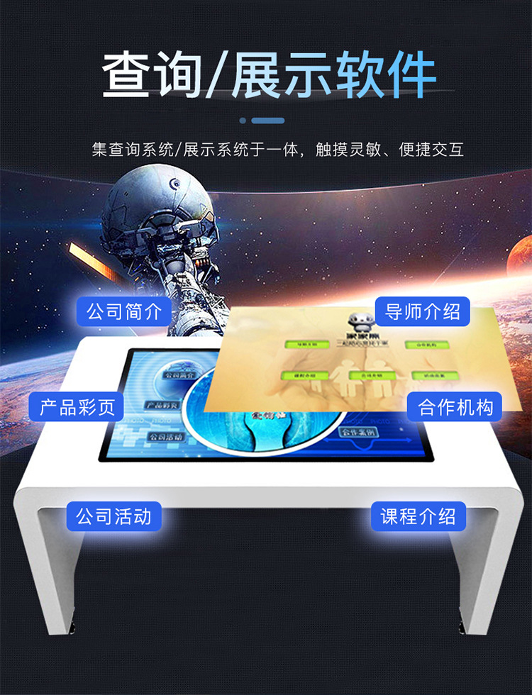 電觸摸茶幾具備十點觸摸、有線網絡和WIFI網絡以及播報語音等功能,。